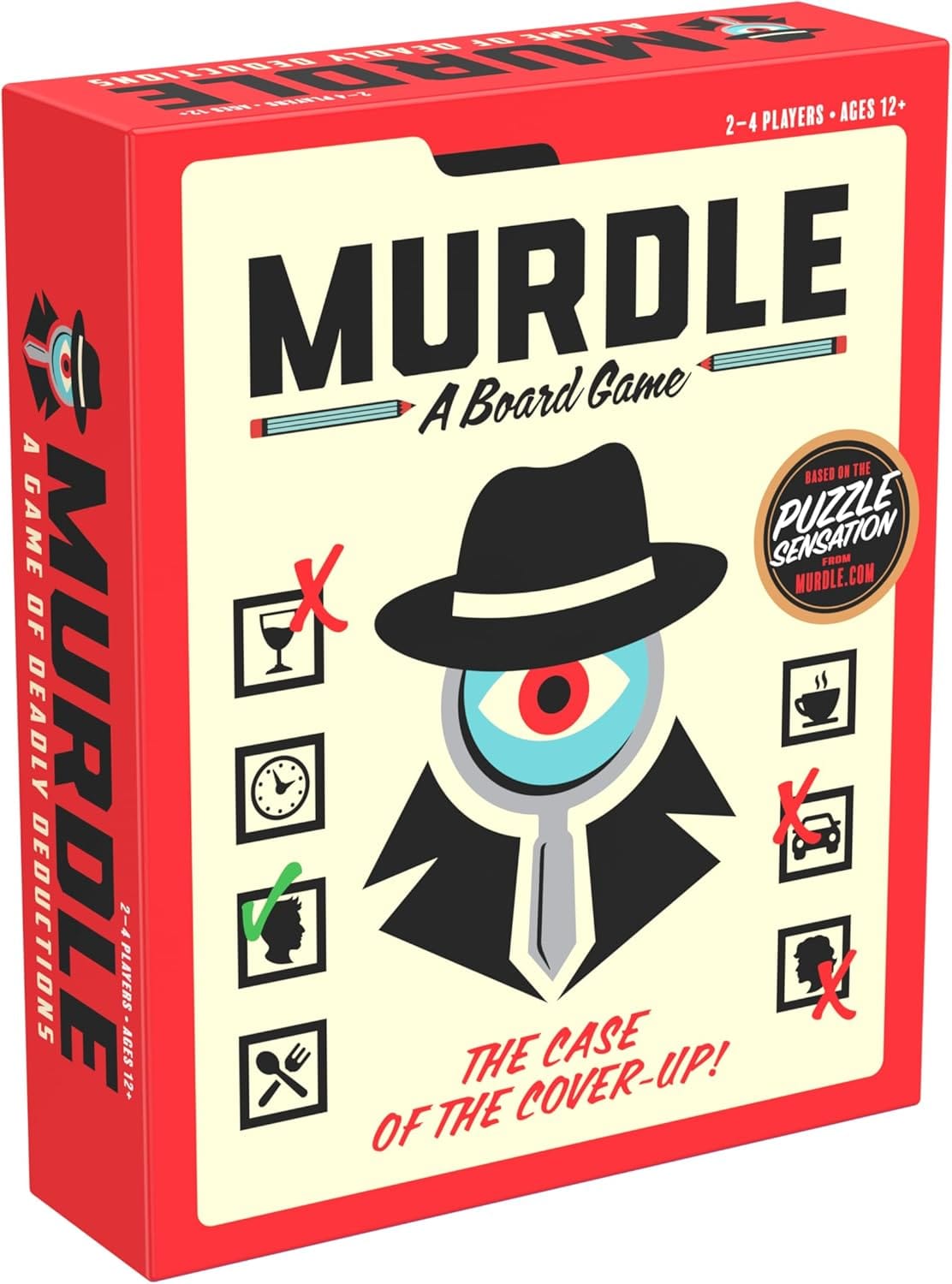 Murdle takes the classic grid-based logic puzzles and turns them into a race. Each player gets their own deduction grid, and everyone works from the same shared clues revealed on the main board. The goal is to figure out who committed the murder, with what weapon, and where.